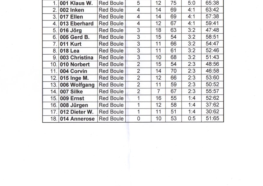 Vereinsmeisterschaft Doublette (es wurde Super-Melée gespielt):